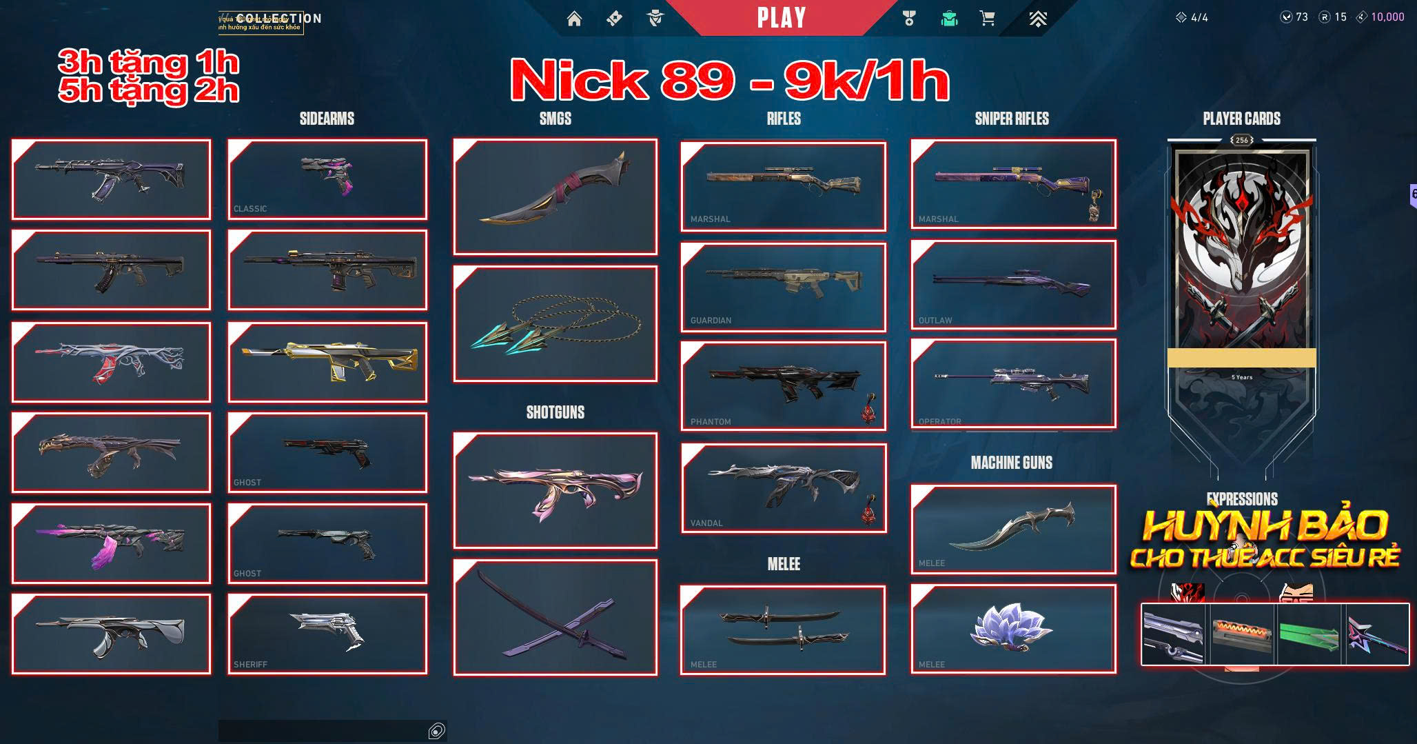 Thuê Account 89 - Thuê Valorant - 99+ Skin - Divengence - Envori - Akayashi....